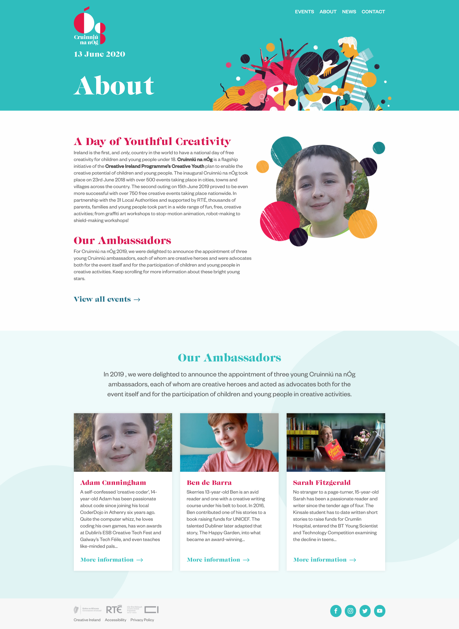 As a member of the creative content team for the Cruinniú na nÓg 2019 campaign, I was tasked with shining a spotlight on this national day of youthful creativity through copywriting, website and social media management.